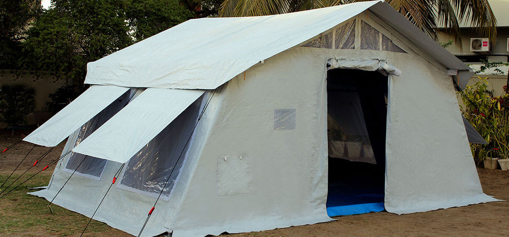 Multipurpose tent, can be used for storage, hospital; dispensary, school, office