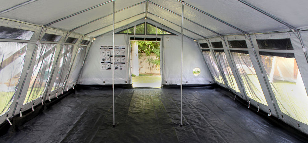 Multipurpose tent, can be used for storage, hospital; dispensary, school, office